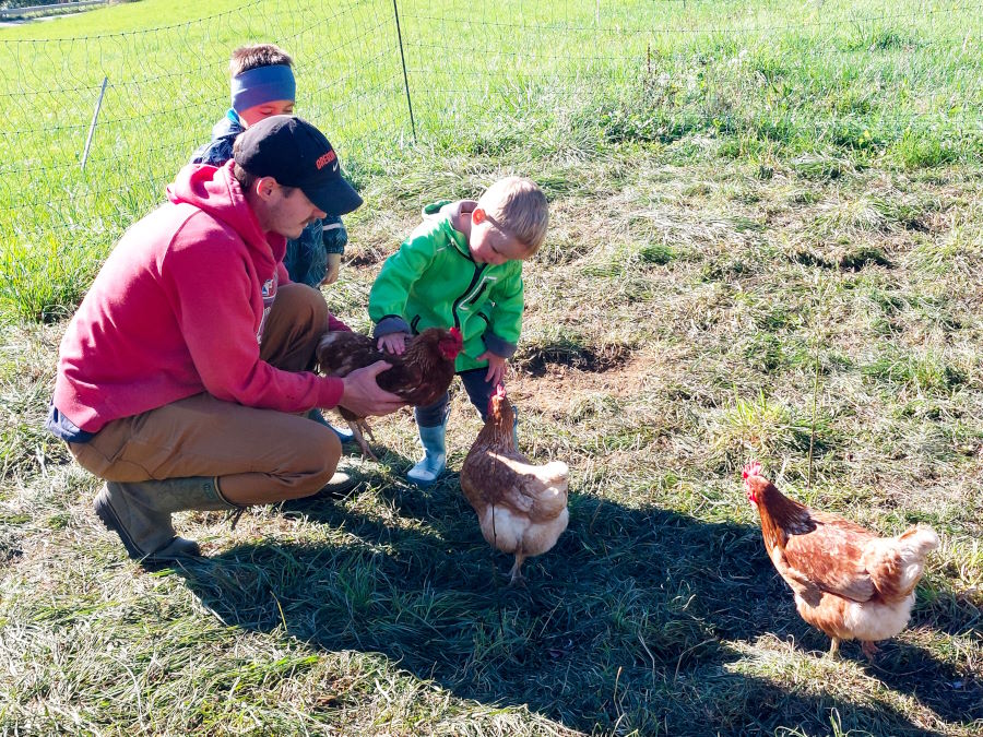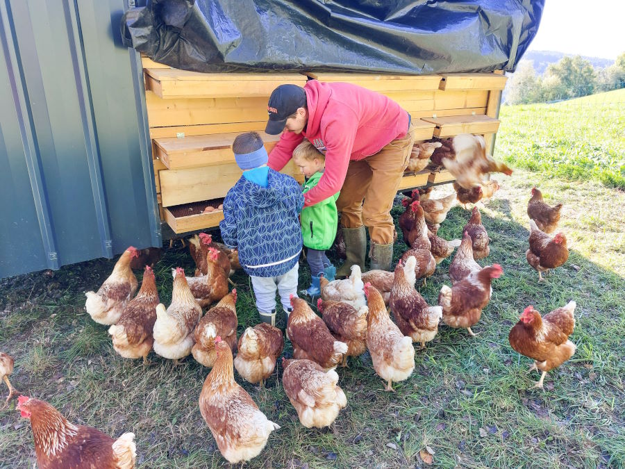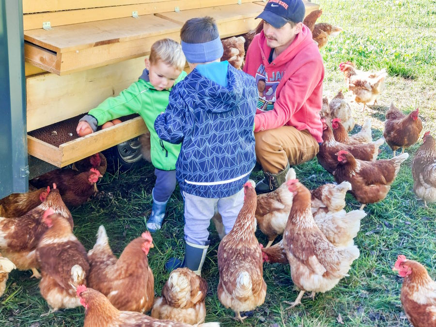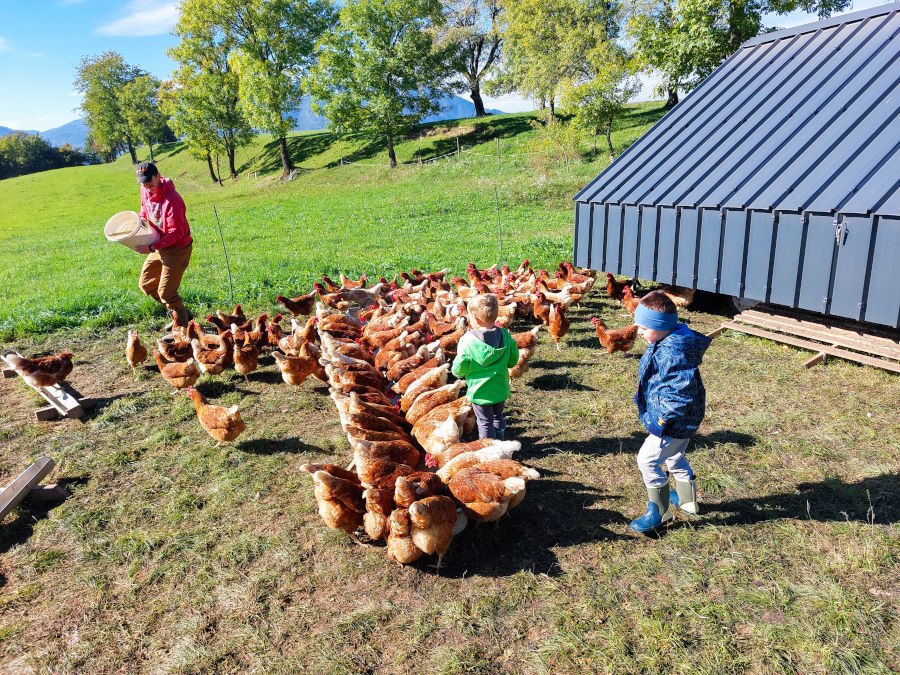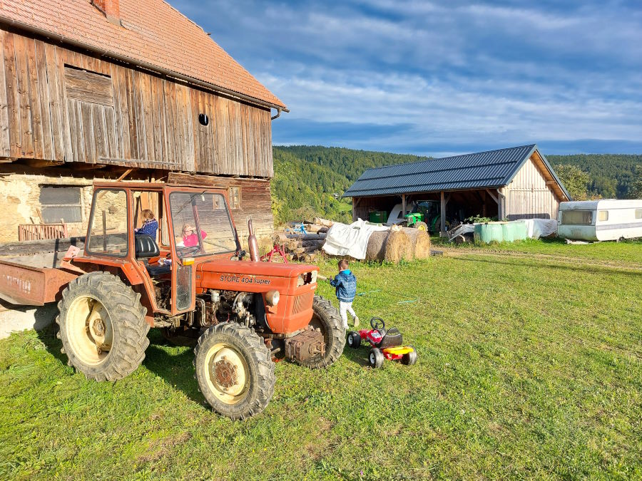 The children enjoyed racing on the main road (the road was mostly free of traffic, just a few cars and a group of mountain bikers) with their Formula 1 car, observing the animals on the farm, collecting eggs, and walking to the panoramic spot, while we took the opportunity to sunbathe in front of the cottage, listen to the ducks quacking, and roast chestnuts. It is so peaceful and relaxing here.